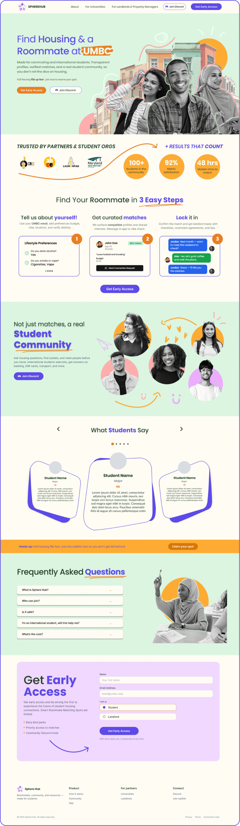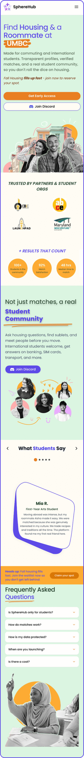 SphereHub: SphereHub is a housing/roommate matching platform for students.